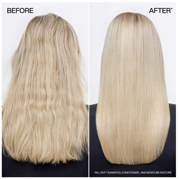 Za takojšen odmerek vlaženja in hranjenja poskrbi nega brez spiranja Redken All Soft . Vašim lasem po umivanju zagotovi vse, kar v tistem trenutku potrebujejo, ne da bi v kopalnici zapravili več časa, kot je potrebno. Pomaga zgladiti lase ter obnoviti njihov naravni sijaj in celovitost njihove strukture. Spodbuja njihovo obnavljanje in pripomore k lažjemu razčesavanju. Vse to enostavno, hitro in brez potrebe po spiranju. Samo nanesete, pomanete, po potrebi počešete in za lepoto ter zdrav videz vaših las bo poskrbljeno. Preizkusite to nego brez spiranja in odkrijte preprost in hiter način za regeneracijo las s številnimi drugimi prednostmi.